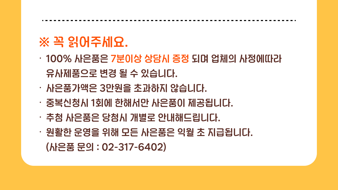 상담신청하고 100% 선물 받으세요!